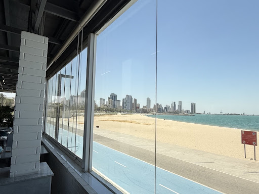 Location is great, windows can be fully open and it's like you are dining on the beach. The decor is great, service is good. I told my husband, if the food taste good it's going to be my favorite....and then...the food got me disappointed...1)lentil soup...too whitish and you can't really feel the lentils and the typical oriental spices that should go with it, and it's very creamy like a french mushrooms soup, maybe they added cream, i don't know but it didn't get better...2)fatoush salad....the dressing is a no no, just felt bland olive oil, a strong unpleasant oil taste, no seasoning we couldn't eat it....3)chicken liver....had a bad chicken smell and it was bitter and dry, couldn't eat it...4)kebab mijana....tasteless meat with a lot of sauce, and the fries put on top of the sauce, they got all wet soaked in tomato sauce....like no comment. 3 things were good, fresh baked bread, humus with meat and eggplant...