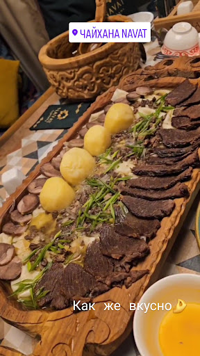 Read moreThere were 15 of us and only 1 waiter who couldn't keep up, he had 3 more tables besides us. We ordered meatballs and Avar samsa for the first course, it was delicious, but khan margelan (steak with potatoes) was not tasty at all, the meat was dry and tough. You could see the plate through the salads, overall a solid two, navat, reconsider the service system,...