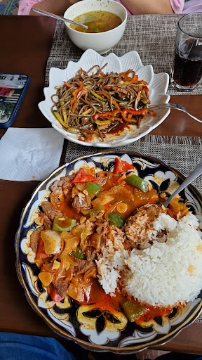 Еда вкусная, молодцы повара, стараются. Спасибо большое. Кабины так себе, сидели как будто в маленькой комнате в очень далёких далёких сёлах южного региона республики, во времена брежневского управления😂😅🤩. Вспомнились студенческие годы🥰 Атмосфера мне лично показалась , нууу как бы пораа бы поменять стиль внутреннего убранства 🤔 Оставить восточный мотив в более современном стиле. Это мои пожелания. А так прекрасно отдохнули всей семьёй. Спасибо и...