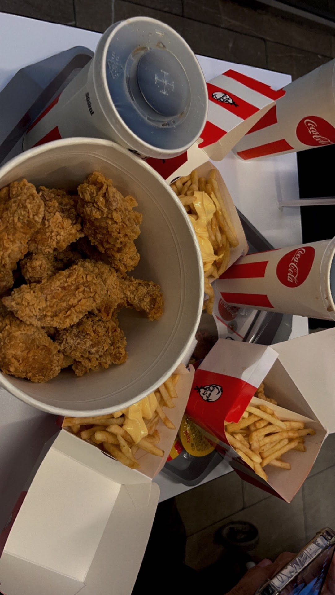 Я вот никогда не понимал людей, кто кушает или пьёт кофе на улице, ну имеется ввиду на крылечках или площадках при кафе. Так как пыль, люди смотрят в рот, тех кто кушает, и да, есть такие люди. Ну таких кафе ресторанов много. А тут прям на заправочной станции KFC! Я понимаю, заказал во время заправки автомобиля, после забрал с собой. А тут едят, сидят и едят! Запах бензина, пыль от людей, которые заходят заправиться. Ну может кому-то и нравится, но не мне! А по вкусу, очередная "забегаловка"...
