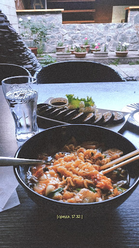 Отсылаясь на название ,надеялась на широкий выбор кимпаба,но в меню оказалось всего лишь два вида кимпаба : с сёмгой и с говядиной. Попросила обычного стакана воды, оказывается воду тоже считают (Бонаква 0,2 было написано) Заказала кимпаб с сёмгой и рамен- понравилось,было вкусно. Но почему-то капуста (кимчи) в рамене была на вкус кислой,будто пропадает. А так в целом рамен норм,много ингредиентов. Порция небольшая,но я наелась. Походу средний чек 500 KGS. Рамен с кимпабом ,+ вода обошлось мне почти в 500с. Думаю 15% за обслуживание чуть завышено для этого места , не в обиду,но это мое сугубо личное мнение. В целом можно вкусно поесть,но чуть...