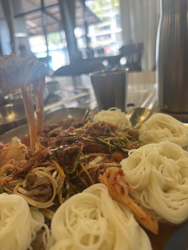 I do not advise this cafe for two main reasons is a kitchen and servise. First, it was my first visit and as a Korean person I was very disappointed by kitchen is awfu and disgusting. Clients should pay attention what they eat otherwise they can find something uneatable like dirty food or even dirty thread from the food. Second, servise is unfriendly and not attentive to customers and their needs. For example, as a basic need is to provide spices for the main dishes. Clients have to go themselves. Interior - not so bad. I can say even convenient. I see only one purpose of this place is to works for mass of people, but not to provide tasty and clean food, and the corresponding service according to their rather...