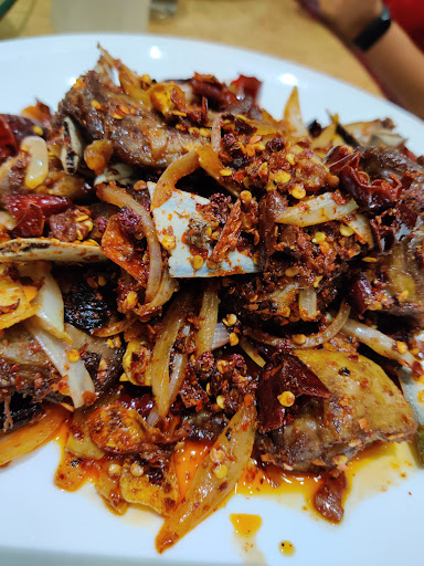 Read moreВ зале уютно. Большой круглый зал в китайском стиле. Снаружи страшненько серо. Даже никогда не подумала что внутри может быть так.Музыка и большой телек с красивым роликом. Туалет как загон некрасиво. И хлещет вода вверх с дырки унитаза. А в конце ты обязан заплатить 15% чаевых или как у них это написано плата за обслуживание. В итоге объяснили это тем вы же не на вынос поэтому надо платить. Я как человек из России и не привыкший что в китайке ты обязан платить чаевые была удивлена. И никто не предупредил об этом. А еще мне не понравилось что заказываешь рис и говоришь мне одну порцию, а официант настаивает на том, что я должна заказать 2. Это впаривание? Мне этот момент неприятен. Порции маленькие 300грамм. На фото можно разглядеть половина в блюде это Лук и болгарский перец, что очень бросается в глаза. Может быть, это...