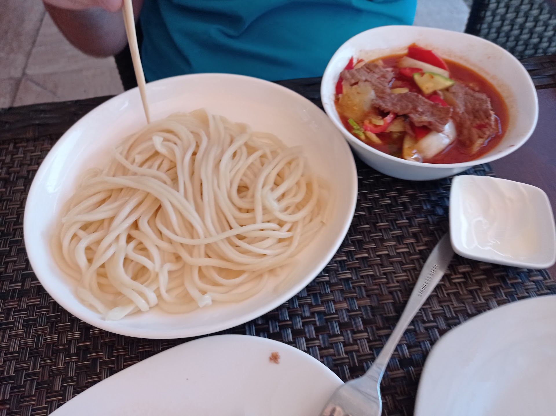 Я встретил маму и с порта захотелось перекусить . Мама у меня личность неординарная и утонченная , плюс была уставшая , поэтому в очереди стоять она отстояла, но окинув зорким взглядом через тёмные солнцезащитные очки абсолютно полный зал , где люди запихивали в себя вкусные лагманы, манты и прочие уйгурские вкусности пожелала сменить обстановку на более спокойную и с бОльшим тактическим обзором , жена попыталась как то отстоять выбор , но мама уже преодолела первые 5 метров и назад возвращаться не собиралась.