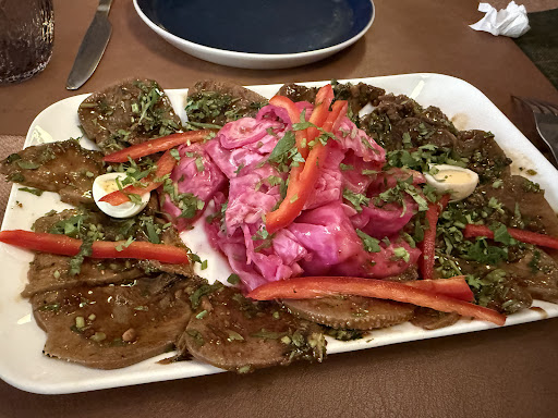 Read moreLunch here was a delight — I had lamb rib soup (very homey and flavorful, but the single rib I got could’ve used a little more cooking time, flavor was fortified with bits of fat and soft bone), cold tongue with horseradish cream (tender but slightly oversauced), and a whole dorado cooked in grape leaves and with nut sauce (very tasty with the sauce and cooked well because the leaves helped shield it from overcooking). Service is on the relaxed side, decor is nice, but there were several small, annoying flies in the air. Price is very reasonable, would...