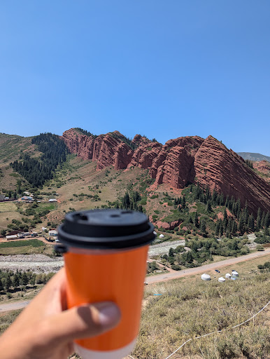 Best coffee in Kyrgyzstan, just located somewhere on the top of a mountain. Yes it is catered towards tourists and very expensive for the country itself. But honestly, it standing right next to the seven bulls rock with such high quality coffee makes the price justified! You might have to wait as its a small shop and many people want coffee (it's honestly located at one of the more touristy places in...
