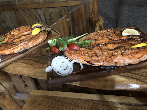 К сожалению ,овощи на гриле совсем не понравились:внутри совершенно сырые,но обожённые снаружи.Баклажаны вообще были с неприятным привкусом.Форель на мангале вкусная,но с едким запахом каменного угля.А как известно угарный дым от каменного угля самый вредный для здоровья.Поверхность столов надо бы уже помыть с обезжиривающим средством,а то они уже слегка сальные.С улицы ,в беседку заходят неприятные запахи,то навоза,то какого то болота что ли.И самое неприятное что рядом за столиком ,мужчины курили,а мы вынуждены были дышать их дымом.Из за этого обед был испорчен,в нашей семье никто не курит,гости из России тоже не курящие,и нам было неприятно обедать со вкусом табачного дыма.А в общем место не плохое,еда более-менее вкусная,цены приемлемые.Хочется чтоб все наши кафе,столовые,закусочные,ресторанчики и т.п. стремились к ещё более культурному обслуживанию,приятной атмосфере в заведении ДЛЯ ВСЕХ,и к вкусной пище.Чтоб в любое заведение общественного питания хотелось прийти...