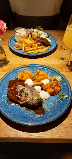 Aufgrund einer Empfehlung sind wir mit dem Paar gestern zum Abendessen hier gewesen. Vom ersen Anblick sah es sehr ansprechend aus. Vor dem Eingang gibt es auf der rechten Seite die Möglichkeit draussen zu sitzen und links sind einige Grills und Grill Eis / Big Green Eggs für Grillevents. Der Innenraum ist zweigeteilt. Der rechte Teil ist nicht so anprechend der Linke wirkt sehr schön wie auf den Bildern. Die Karte und die Aufmachung der Karte machen eine guten Eindruck und man bekommt auch schon hunger. Das Erste was bei den Vorspeisen aufgefallen ist das es verschiedene Vorspeisen gibt, aber leider wurde die gemischte Vorspeisenplatte von der Karte genommen. Was eher schade war. Als wir die Bedienung darauf angesprochen haben bzw. nach der gemischten Vorspeisenplatte fragten kam der Hinweis von der Karte, Zitat "PAIR AND SHARE ODER SHARED DINNER". Das heißt so viel jeder kann sich was bestellen und man darf sogar diese Gerichte untereinander teilen...... Wir haben dann verschiedene Vorspeisen genommen. Das Alioli war sehr flüssig.. Das Brot mit verschiedenen Dips. Vom Ansatz ganz interessant in einer kleinen Aufbackform serviert. Begrüßenswerte wäre es gewesen wenn das Brot warm und frisch aus dem Ofen gekommen wäre. Es war aber kalt die Oberfläche/ Kruste eher trocken. Von der Konsistenz ein holländisches Weißbrot. Die Gerichte sind eher hochpreisig 2 haben das Rinderfilet mit Zwiebel-Senf-Kruste für €42,- genommen. Dei beiden anderen Gerichte waren von der Grillkarte. Das Filet war eher geschmacksneutral und lies sich wie Gummi kauen...Die Zwiebel-Senf-Kruste war eine Paste die oben drauf geschmierte wurde und leicht bräunlich war, aber nichts mit einer Kruste zu tun hatte. Bis auf eine Person haben wir auf den Nachtisch verzichtet. Da gabs den Fertigschokokuchen der höchstwahrscheinlich aus der Mikrowelle kam. Der anschließende Kaffee war eigentlich schwarzes Wasser. Die erste Runde haben wir zurückgegeben danach haben wir ihn wenigsten mit einer "Crema" erhalten das hat aber leider nichts am Geschmack verbessert. Die Freunde sind nicht die großen Kaffeetrinker und begnügen sich mit Senseokaffee und für die was es auch nicht geniessbar. Die Gesamtrechnung belief sich auf €316,- Absolutüberhöhte Preise und schlechte Qualität, man sitzt aber schön....