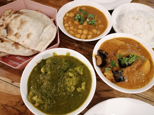 Read moreWe ordered vegetable Jalfrezi, aloo gobi, dhal and Vegetable korma. They were nice, but no difference between any of the dishes unfortunately. I would expect the jalfrezi to be a bit spicer, or more flavour from the spices and chillies. The vegetables in both veg curries were possibly frozen veg - as they looked and tasted pretty bland, and not what you'd expect from fresh vegetables (square carrots, sweetcorn). The naan breads were nice (even though they were more of a chapati thickness and texture) - definitely worth getting the garlic naan as it had more flavour than the...