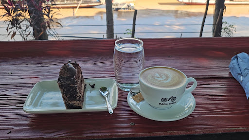 Read moreFirst of all, a cafe on the street across from the Mekong River, with a seat along the Mekong River where you can look out over the river. Oh, the flat white. Among the flat whites I've had in Australia and elsewhere, this was the latte that suited me. The medium roasted coffee, soft and rich milk foam, and cute latte art, the harmony of each ingredient was not too much, and the taste of coffee and milk blended beautifully in my mouth. Then there was the black forest cake made with chocolate, with strawberry jam in the middle, the simple bittersweet taste of chocolate, the refreshing taste of strawberry, and the soft cream combined to add variety to the simple taste. And lastly, the scenery in front of you took away the time to savor the taste....