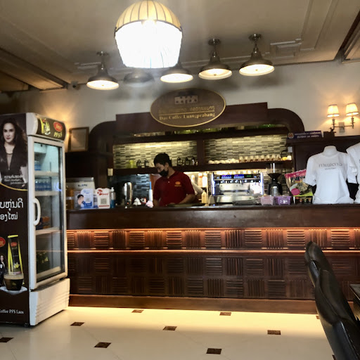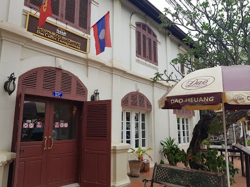 I get a hot espresso for 30,000 kip. The coffee tastes good. I also got the mekong river fish noodle soup for 80,000. It was pricey but better quality than the typical noodle soup one gets around town. The place has a faded, slightly decrepit, old fashioned vibe. Maybe it was built by the French back in the day. It's kept well chilled and has free WiFi. There are some tables, shaded by trees and umbrellas, street side. It's patronized by well to do locals and, of course, tourists. The service has been fine. In addition to the food and beverage items on the menu, they sell Dao branded roasted coffee and dried fruit snacks. The Dao Heuang Group is a top coffee producer in...