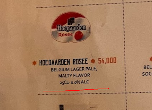 I ordered a non-alcoholic beer, as listed on the menu, which stated it contained 0% alcohol. However, it turned out to actually have 3-5% alcohol content. The menu was incorrect, yet the owner claims it was my fault. What a tactic!