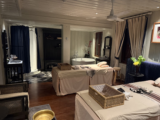 We had some really good experiences here. First the incredible deep tissue massage. Just everything was right about it. The whole athmosphere, the music, the therapist. There is a shower, toilet and bath. All very clean. You imagine yourself in an other world. After the massage we went to the restaurant not knowing that it was the same company. I had a Tom Yom Coong soup. The staff is all very good. We got served by Miss Noy, Samai and Somair. I recommend to go here. They...