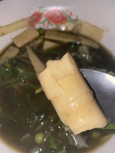 I got bamboo soup and stir fry bamboo with chicken. When she came to me and showed me the bamboo prior to cooking, I confirmed them that each dish would cost 50,000 Kip.
