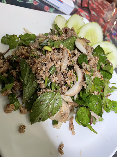 The menu has both Asian fusion and vegetarian dishes. Some items are marked with a star as recommended dishes. I asked for the most Lao dish she had and she suggested Laab. It came with a lot of herbs that complemented the meat flavor. It felt like an authentic Laos flavorful food.