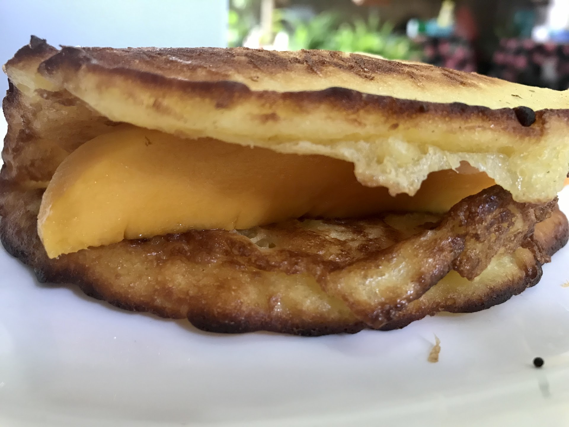 I had the much praised sticky rice mango pancake. It wasn't at all light and fluffy but a heavy thick pancake with a couple of slices of mango.