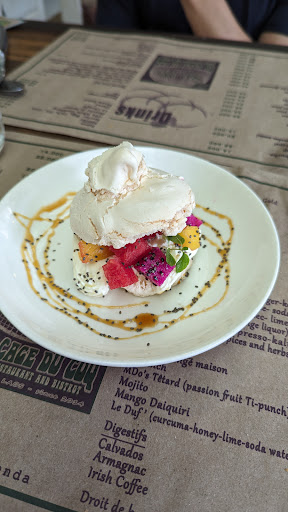 Read moreCame here 2 days in row out of my 3-day trip in Vientiane, and it’s unusual to me No brainer was my favorite spot and the most delightful thing that I had there. Ordered beef tartare at the first day: it was so tender, clean-cut, with decent amount of coriander to balance out the onions, it’s simple but flavorful, thought that dipping was mustard but was told by the chef it’s mayonnaise with onions, it goes great with either the fries or mix it up into the tartare, just personally prefer the dice is a bit smaller, haha And then had the duck confit on the second day: it’s jubilant from the presentation to the taste, it’s not dry at all, neither greasy, yet still easily apart the meat from the bone, and surprisingly the skin goes crisp all the way long til my last bite, the plants around make every single bite such an interesting structure, adding longan gives it slightly sweet after all the savory flavors, either white or red wine makes it even better, speechless. Ended up with the dessert Baba au Rhum which was recommended by the this happy staff named Nu/New there. This dish is fluffy, moist and creamy, not crazy sweet but so satisfying. Nice presentation, nice vibes, as well as the team, they look like a family, which makes the food so tasty, I appreciate it, gonna miss all theses...