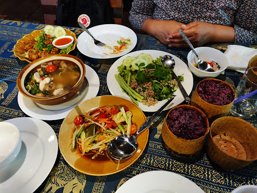 2020 review: As other reviewers do mention often, yes, prices are on the slightly higher end, but the portions are generous. We ordered the special menu for two at 170k (ā¬17) total, which consisted of 4 different dishes and two little baskets of sticky rice, which really is a lot - we couldn't finish everything. And if you're coming in as a tourist from western countries, the prices are still incredibly cheap in comparison. The dishes were flavourful, albeit spicy: do inform the staff if you can't handle chillis well! I also enjoyed the outdoor setting around a wooden house, and the fact that the kitchen was clean. The menu has lots of Lao dishes on offer, so I'll definitely come back...