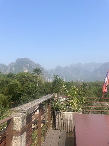 Wow. So I’m to be honest writing this review as I’m still sitting here. The view point is stunning but a major attitude shift is needed. While waiting more than 15 minutes now for a black coffee, which by the way I’ve already paid for, I observe two other staff yawning and fixing their nails. There’s basically no greeting when you arrive and you don’t feel welcome. This seems irrespective of if your own nationality- a group of Chinese tourists were greeted in the form of arms folded, blank expression. I really hope this isn’t the current pattern of service in Vang Vieng because they will continue to lose tourists if they continue like this. It’s all just a bit flat and depressing.