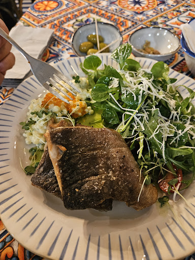 The atmosphere was amazing and the food was good, we had a tuna tartar for appetizer and it was fresh and very tasty, first time trying tartar and I was not disappointed, we enjoyed Valentines day there, the only negative thing about the service is that the waiter didin’t wait until both guests are finished with the food and then take the plates, plates were taken as fast as possible, I got my main right after the starter, like plate to plate, over all I felt very rushed, next time hopefully we have more time between plates so we can feel more relaxed. Will add that everyone was very friendly...
