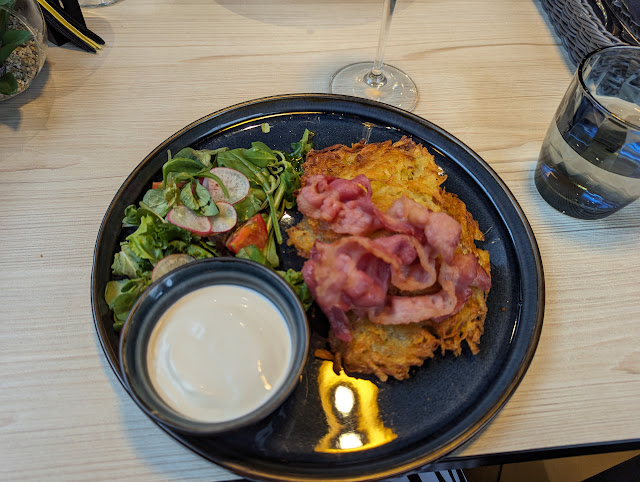 We asked what had happened, and the second salad was brought out very quickly — clearly a rush job.