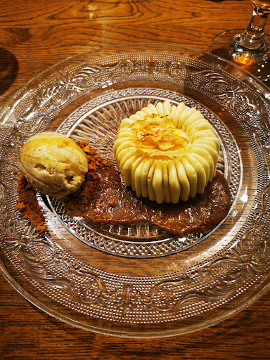 From the main dishes, the standout was the Lightly smoked eel fillet with potato-horseradish terrine, kohlrabi, and fried garlic aioli. Both the taste and presentation were excellent.