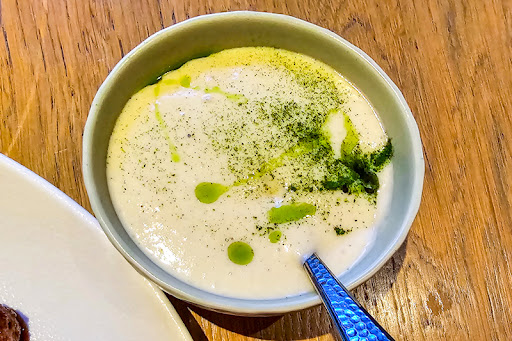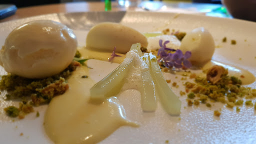 The waiter was very nice and was fluent in English. The appetizers: They start with a complementary appetizer with various flavors that being mixed on a paper and ment to be dipped with bread. I am a glutten free person so I have asked for glutten free bread, after approx 7m I got a bread that used to be freezed an was heated via microwave. The bread had still frozen areas and this is the main reason for 4 stars and not 5 Next we had the asparagus and fuagra.