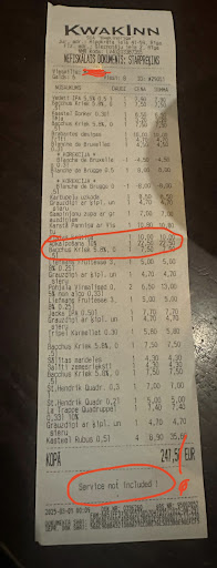 Receipt : 51 Euro for 3 dishes, 2 big beers and 1 small and...