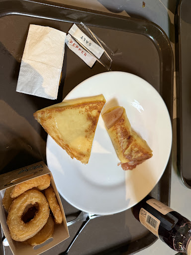 I absolutely do not recommend this place! Choose anything other than that. The only good thing about it is that prices are relatively cheap but you can feel it’s low value when you eat it. I would rather starve than eat here, better choice is McDonald’s nearby, it more likely has less oil than food here. The crepes I got were covered in butter I feel like they’re using much of it to cover the lack of flavor of food here. Cutlet with cheese I choose had butter instead of cheese and it looked like turd and smelled like one too. Most of the items don’t look very appetizing. Fries, nuggets, churros and pasta were cold, dry and unflavored, you could literally eat churros with ketchup and think it’s fries. Although salted caramel coffee was good but it obviously wasn’t made here so that why it was tasty. Desserts also didn’t have flavor weren’t even very sweet and had odd consistency but I guess it’s up to preference. The cashiers weren’t nice. One woman was rude, rolled her eyes at me. But at least when I was taking coke they recommended me to take two I suppose because it was more beneficial but I don’t even know because they weren’t able to explain it to me or didn’t want to, communication was hard. Place doesn’t look bad, many table choices but it’s very crowded, loud and honestly just uncomfortable to be here. Queue was long, I might have just came across busy hour or day, but also the cashiers were slow, had troubles with counting and adding stuff to their screens. The food was getting cold or warm (coke I got - from refrigerator - just before going into the queue was warm when I tasted it right after paying) when you were waiting that long. Fun fact my friend burped after eating and it stank terribly it was surprising because her burps hardly ever smell. And my other friend literally threw up after eating nuggets and fries. Overall very bad experience, absolutely don’t recommend, don’t even bother going here and thinking you’ll leave satisfied with what you just ate, so many better choices, waste of...