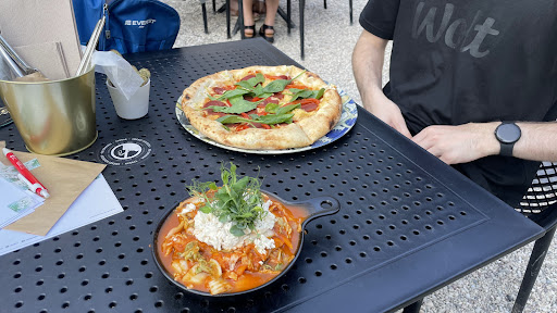 The food situation was a bit more complicated. The menu had decidedly Spanish undertones, with many of the dishes including chorizo or pulpo. There was a broad selection of snack plates and a couple of salads, but the main dishes were limited to various pizzas - a Spanish-Italian fusion? Oh okay, I guess most Mediterranean cuisines mesh together rather well.