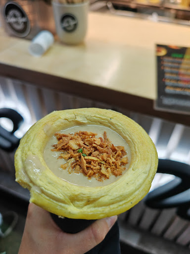 This place is located in the Central market. I went there today and tried the tomato soup. It was delicious. It comes in an edible cup which i love because it lowers the plastic waste and you can enjoy the crunchy, tasty bread while eating the soup. Such a great idea. They garnished my soup with some cheese and croutons. They had 6 soups to choose from and i had a hard time picking one because they all sounded great. The customer service was very nice. The people behind the counter were very friendly and told me what's inside all the soups. Really good people and really good soups. I will definitely come again and encourage everyone to...