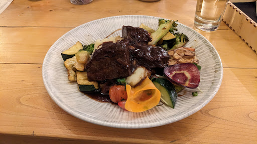 They had one of my favourite ciders available, which is actually English, but we never really see it in England. The sharer which I had with a friend as a starter was really good, balanced between, meats, cheeses, fruits, and breads. The beef cheeks for my main were tender and full of flavour.