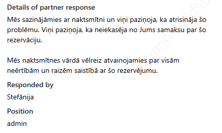 Read more🔺 Melo, neceļ klausuli, noskaita naudu no kartes pēc tam, kad booking strīdā pasaka, ka nekas nebūs jāmaksā! Tagad draud ar tiesvedību par sliktu atsauksmi. Esiet uzmanīgi!!! 🔺 Iebraucot numuriņā, nebija karstā ūdens. Tad, kad ūdens tika iedarbināts, tas vispār negāja kanalizācijā un vīrs dabūja vērt vaļā dušas trapu, kurš bija pieblietēts ar netīrumiem. Bet tas ir sīkums salīdzinājumā ar to, kas notika, kad nolēmām saīsināt uzturēšanos par vienu nakti. Nosūtījām pieprasījumu caur booking, bet viņi atteicās piekrist mainīt datumu, centās visvisādi atrunāt, pārmet, ka vēlamies vienu nakti mazāk pavadīt laika. Pusstundu pa telefonu nācās strīdēties ar īpašnieku, bet viņš tik un tā nepiekrīta mainīt datumu. Jau bija gandrīz laiks, lai mēs izvāktos no numura un man šķiet, ka viņš speciāli vilka laiku, lai mēs faktiski paliktu bez izvēles iespējas un mums nāktos palikt / maksāt par nākošo nakti. Beigās viņš pateica, ka viņam nav laika sarunai un vienkārši nolika klausuli, jo viņam esot kaut kāds pasākums. Jutāmies kā cietumnieki, kuriem neļauj pamest viesnīcu. Nekad savā dzīvē man nav bijusi tāda situācija. Sākumā īpašnieks mums pārmeta, ka, ja atcēlām rezervāciju, tad viņam brūk bizness un cits apstājas, bet galu galā izrādījās, ka ir meli. Tad viņš vēl pārmeta, ka mēs neesam drausmīgi attiekušies, ko arī viņš pateica trīs dienas iepriekš attiecībā uz rezervāciju. Tad, kad viņš saprata, ka saprotu piekēriens ir par daudz, viņš nolēma mainīt taktiku – mēģināja teikt, lai nemaksājam par nākošo nakti un vienkārši braucam prom, kas ir pilnīgi pretēji tam, ko viņš gribēja iepriekš. Atteicos no tā, jo mani kartes dati ir pie viņa. Ja mēs vienkārši aizbrauktu, kur ir pierādījums, ka viņš pēc tam naudu nepieprasītu un nerakstītu, ka esam parādnieki? Bija sajūta, ka mūs uz katra soļa mēģina piečakarēt. Vienīgais risinājums nāca, kad sazinājāmies ar Booking klientu apkalpošanu un izstāstījām situāciju. Tika nosūtīts complaint un tad beidzot varējām doties prom. BET, beigās viņš vienalga noskaitīja no manis nost līdzekļus par abām naktīm , divas dienas pēc vizītes beigām. Kad zvanīju un prasīju - kas notiek? Viņš teica, ka "sliktas atsauksmes nevajag atstāt". Es ierakstīju sarunu, nosūtīju pieteikumu maksājuma anulēšanai Swedbank, nosūtīju sūdzību Booking un vēl uzrakstīju oficiālu iesniegumu PTAC....