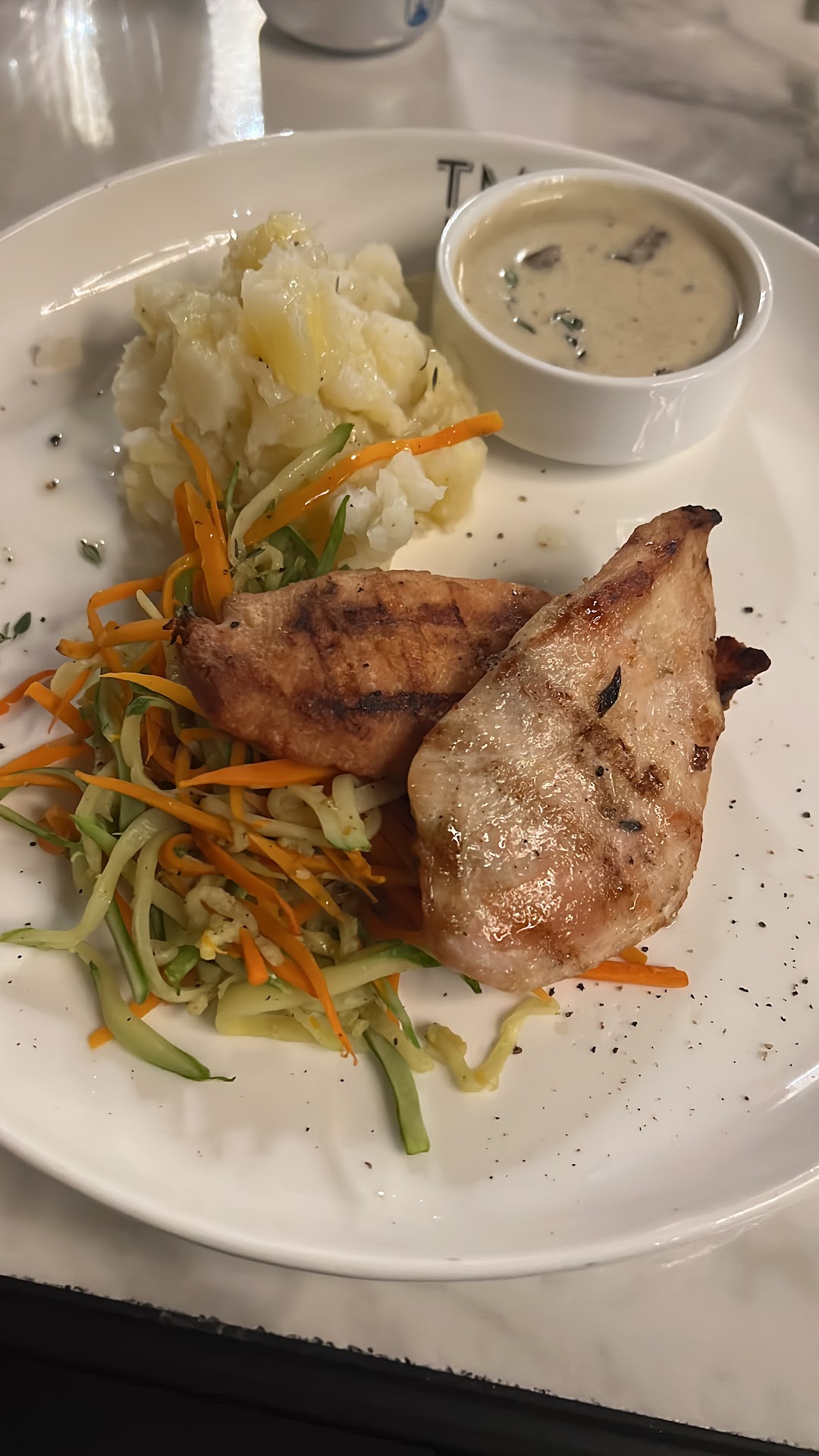 Now, let's talk about the food! I ordered the chicken breast with mushroom sauce, and it was absolutely delicious. The chicken was cooked to perfection, tender and juicy, and the mushroom sauce added a rich and savory flavor that complemented the dish perfectly. The portion size was good, and it was beautifully presented (as u can see in the picture). The combination of the chicken breast with mushroom sauce and mashed potatoes was a match.