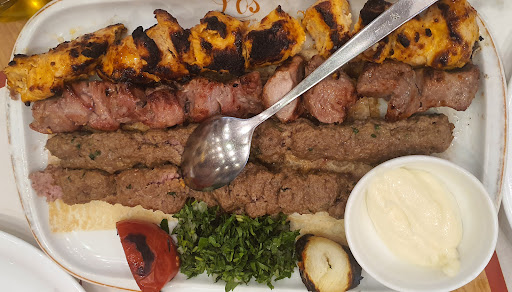 Food came rather quickly and the appetizers, to be fair, were good. The grills which are typically brought down some time after the appetizers came with the appetizers. The grilled meat in the plate looked pale and almost translucent, looking closer to boiled meat than grilled. The kafta was a rolled grainy stick. The tawook was grilled since maybe yesterday, overly done that a canine will probably struggle to chew.