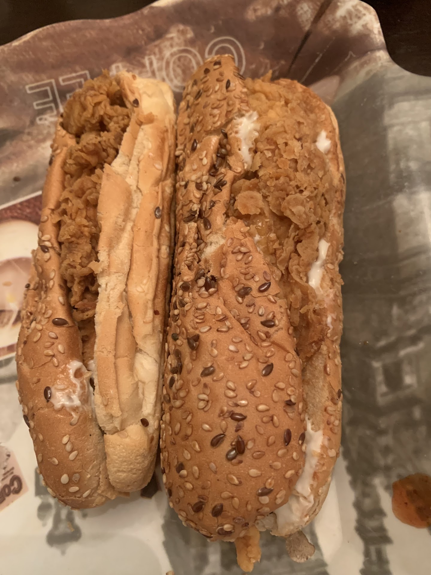 The sandwiches don’t look like the ones in the menu 😂 BUT it was still very tasty.The only problem was that the sandwiches were dry so I had to add the sauces (cheddar,garlic) I ordered.