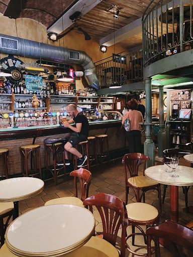 Inside, the decor is cool and a bit gothic, with copper tanks and painted ceilings—worth a peek if you're into that kind of character—but for us, sitting outside and soaking up the street energy was the real highlight.