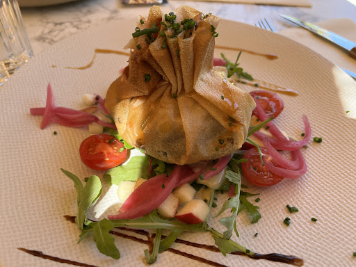 Read moreOur first night in Normandy for a history tour and we discovered this gem of a place tucked away in a courtyard off the high street. Booking advisable as the place was rammed (clearly deservedly popular!) but we were fortunate enough that they found a way to squeeze the five of us in by squeezing two smaller round tables together. The service was friendly & efficient, the atmosphere warm & inviting, and the food was absolutely delicious and very reasonably priced. We did not have to wait long for any dishes despite how busy they were either. All in all an exceptional dining experience, cannot recommend...