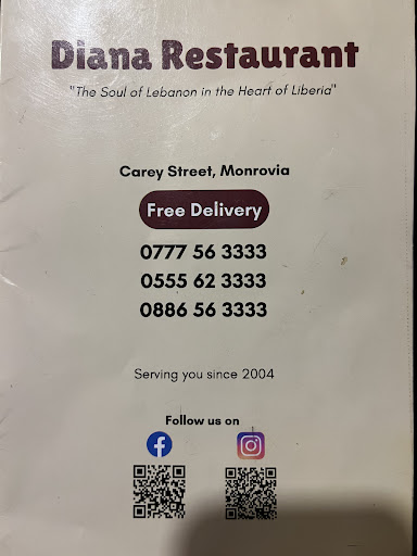 Read moreDiana is one of the "relatively" fair places to rely on in Liberia when you're having a busy day at work. It is more focused on sandwiches, with "thumbs up" for its famous Shawarma. The food delivery service is quite fast and the quality is not that bad either. Knowing that hygiene and cleanliness remains an issue in Liberia, Diana seems to pass the test. Never got food poisoning, neither any sort of discomfort. In addition, it is located in the centre of the town and it's prices are...