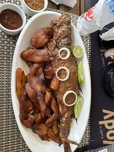 This restaurant is located in Liberia Weest Africa and is owned by the Baker Sisters: Zoe, and the other pretty one who doesn't smile so much Marie but she's very friendly. The food is Liberian Traditional and is a favorite lunchtime spot of high ranking Liberian officials (networking anyone?). I really like the: Fufu with Bitter leaf (not really bitter but an acquired taste). , Palm Butter day, you better get there early! I have to admit I wish I got more meat in my sauce JK, I guess it was enough. Now, what I don't like so much, I guess it would have to be the purple paint job of the interior, but all-in-all a wonderful dining experience. I will add some...