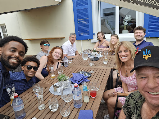 The food, service. and ambiance were great!! We came in with a group of ten and it was a hot day. We had a few pictures of water which Laura decided was too much and after serving us charged 5 franks per glass of water. Absolutely terrible customer service by the manager!! She should be ashamed of charging extra after serving us for tap water. Avoid...