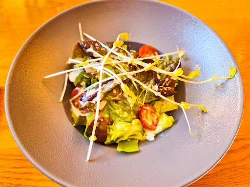 The chicken with couscous citrus salad was really good. I have never had couscous that way, and it was light and fruity! The spaetzle was also enjoyed. We came at an off time, so it wasn't busy at all. Service was ok and the overall experience was pleasant. Since we walked here (after public transport), I don't know about parking for the area, but didn't really see any as it's off a...