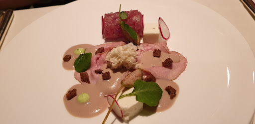 Read moreA brilliant restaurant serving modern regional cuisine, overlooking vineyards next to downtown Vaduz. I got the daily set menu, which was three courses (and an amuse bouche) for 86 CHF. The first dish is a combination of a chilled tomato soup with marlin on a cracker. The thick tomato soup is delicious with plenty of subtle spices to obscure the intense flavor of tomato. It was so good that I didn’t leave a single drop remaining. The exceptionally fresh marlin goes very well with the soup. The torkel style Vitello tonnato is superb. It comes with a couple twists: two pieces of lightly smoked tuna accompany the sliced veal, as well as fresh cheese cubes that taste of light wasabi. Little bits of texture from croutons, radish, sesame, and micro greens further add to the dish. The teres major steak (beef clod) was prepared perfectly to be chewy and tender with a rich beef flavor. The baked mini potatoes were welcome, and each sauce it came with was delicious. The passion fruit dream dessert features a passion fruit cream sweetened using honey, with the texture between ice cream and pudding but an exceptionally creamy mouth feel. Passion fruit seeds are laced at the top of the cream, as well as sweet berries. It was the highlight...