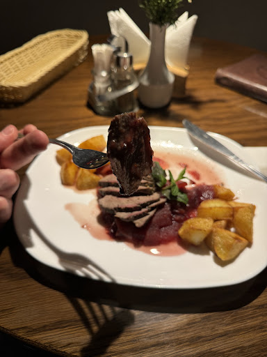 Giving 2 stars only from symphaty for waitress. She seemed lovely and did her best, however kitchen did the worst. Duck was not even close to what a duck meal should be. Apple/pear garnish and french potatoes and cranberry sauce sounds beautiful but the meal was something scrapped from salad bar leftovers. Duck was pre-cut, same as you get on a salad, nothing like a main meal. Price for quality and meal itself is out of the moon. Really unpleasant experience. Advice for owners/chefs - if you cant make some dishes just take it off your menu. Menu is more than 10 pages. That was my own fault chosing this place, that I understand. But would not ever recomend anyone to come here. Also - no alternative...