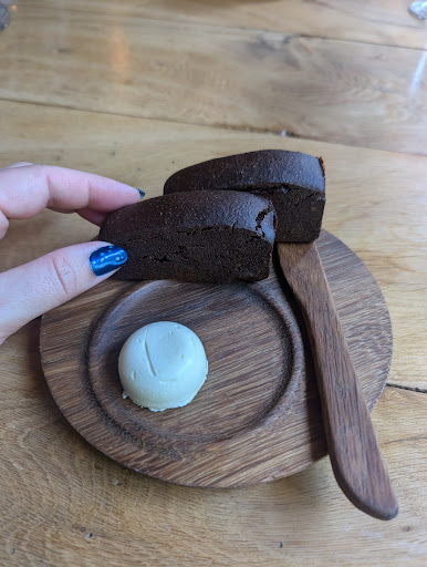The salmon with morels made me understand why people are obsessed with morels. Those little morsels suck up flavors like delicious, edible sponges and makes them extra sexy with an added layer of savory, earthy, mushroom-ey goodness and I stole them off of my dining companions' plates. The second entree was a rib eye steak with tomato cube that was perfectly fine.. My steak was a little too well done for my preferences but I switched with my friend whose steak was rarer and while the flavors from this plate were alright, I think this course was my least favorite. The first dessert will haunt me till my dying day and rivals ones I've had in NYC that have mile-long write ups and influencer clout. A crispy, lighter than air blackberry meringue?? Over an elderflower sorbet with rhubarb and creamy floof whip on a delicate, buttery spun granola grain disc that melted in my mouth like poetry like hawt dayumn. Also, the wine pairings were dreamy and the non alcoholic bubbly was phenomenal.. if someone could get me a pic of the bottle I'd be much obliged. The space itself was classy, with minimalist industrial design elements and quiet nods to the rustic influence of the dishes. Not overly quiet or boisterous, so perfect for an evening out with dates, clients, and anyone who likes to nerd out over food. I made a point of thanking the chef after our meal and really really hope he wasn't too creeped out because I'm definitely...