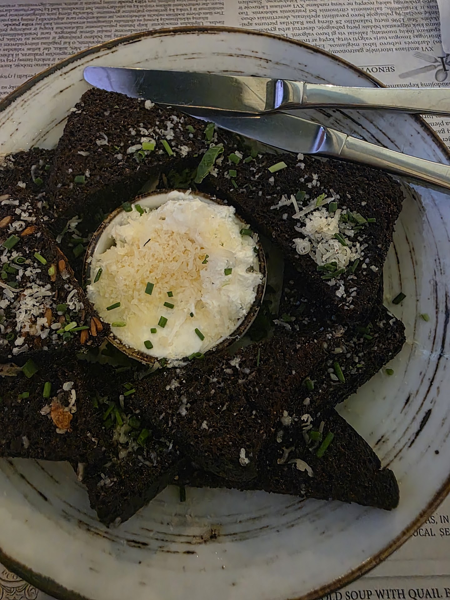 Read moreThe menu is very creative and fun to read, I really enjoyed going through the dishes and trying to understand what the food would be. I had a hard time choosing, it all sounded so fun! So that was really playful. On the other hand, it was very confusing, I had to ask several questions trying to understand what the dish would actually consist of… i finally decided for veal steak with bell-pepper ice cream. I was told the ice cream was not sweet and not too weird, that it was very nice and it was their signature dish. I was also told that there would be vegetables served with it. What they brought me was by no means a steak but a schnitzel — a breaded deep-fried piece of meat…. Topped with a big spoon-full of herb butter— I guess the oil from the deep-fried bread crumbs wasn’t enough… the ice cream didn’t taste like bell-peppers at the slightest. It was sweet and tasted like fake cream in cheap cakes. The vegetables I was told I would get were just a few pieces of lettuce, again covered with some sweet sauce. I found this whole dining experience extremely disappointing as the menu sounded so exciting and the dish really disappointed me on multiple levels.