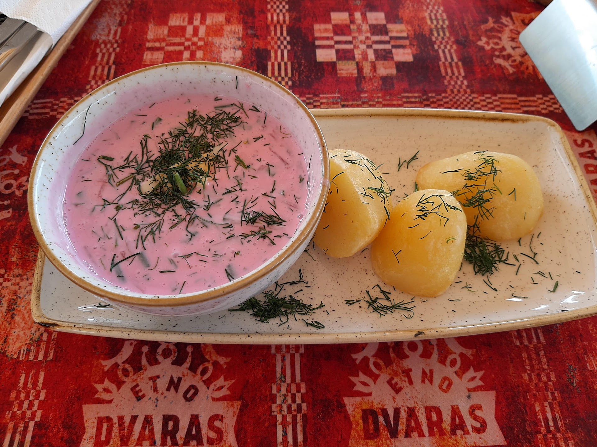 Read moreTonight Our group of 10 travelers from 5 countries looked for typical Lithuanian Food. We asssured with the person who seated us that we could pay with separate checks. Our Latvian your guide spoke to her in Russian. We enjoyed a great meal of forest mushroom soups in black bread bowl, potato pancakes stuffed with meat. Pork with sauerkraut and pickles, beet root soup, beet soup. I ordered bacon which meant pork bellies well prepared with beet root salad and sayrkraur with a delicious pickle. For drinks we chose red wines, local beer, sea thirn berry tea , and lots of water served with crsnberries and mint infusión. Huge bowls of ice cream found their way to our dessert palate Great traditional decor. The problem ocurred when the servers told us that we could not have separate checks. Four staff stood around with negative attitudes. Unfortunately this presented a problem for our group. Not recommended for a group of international travelers who want to support local economy and experience the local people and customs. The rudest people we have encountered in our 6 week tour of Scandinavia...