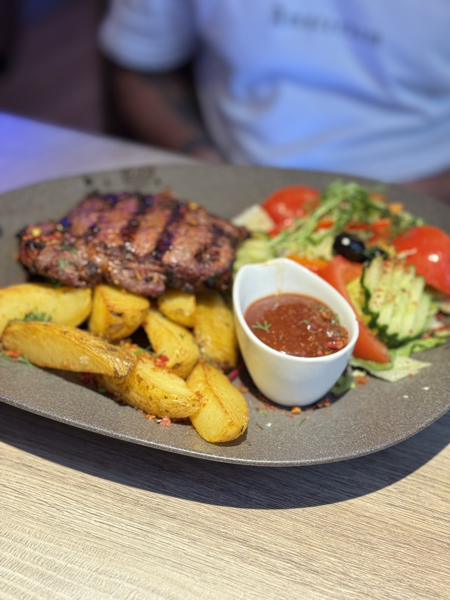 Read moreMy partner and I had dinner here after reading good reviews. The restaurant has a lot of tables: outside on the street, outside within their walls and inside of both floors. We sat upstairs where the distance between the benches and our table was a bit too large to be really comfortable to eat at.