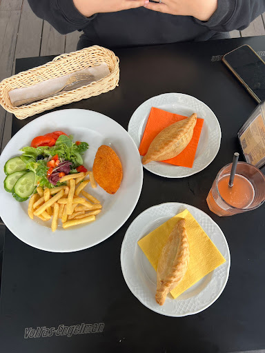 Very busy place. They have to entrances, one by the terrace and one by the bar, also probably just during busy weekends, they had little kiosk out side,that sellskibinai. You can order either eat in or take away. I have been here previous and I liked it much more. This time it was not bad, but because we had 2 strollers with us, things were a little tricky, so we opted for take a away. Prices not the lowest. And unfortunately they sold out the chicken kibinai, so I had to order all other kinds. One little thing I didn't like about pastries that I bought, that mutton and beef ones were very peppery. Essentially too spicy. But maybe just for me. Other than that nice place right on the side of the lake by...
