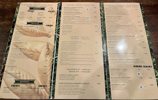 Read moreThe town of Trakai is known for its picturesque island castle and Kibinine, a baked wheat flour pastry with a filling of meat, vegetables, or cheese. Senoji Kibinine has locations all throughout the city selling these delicacies, as well as a cozy restaurant catering to visitors. We tried the Mutton and the Venison Kibinine, both of which were filled with ground meat mixed with onions and spices. The soup of the day was a creamy spinach soup topped with croutons; and the Roast Pork with Mushroom Sauce was a pounded, lightly breaded pork cutlet topped with a creamy mushroom sauce and served with a simple salad of greens, radicchio, red bell peppers, cucumbers, and tomatoes. While the restaurant was a nice setting to eat, the food was simply not fresh, and most of the items had been sitting around for a while and were simply reheated (including...